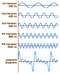 En la gráfica podrás apreciar que la forma de onda final se puede descomponer en muchas ondas sinusoidales denominadas armónicas, todas sumadas.